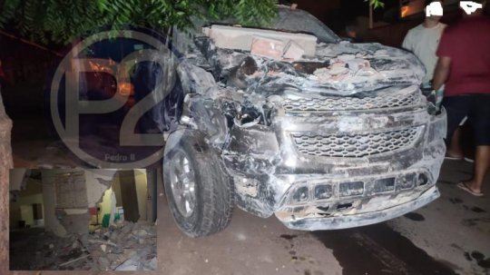 Uma caminhonete S-10 invadiu uma casa, às 23h45 de domingo (14), na rua Corinto Andrade, próximo da praça do Cruzeiro em Pedro II, na região Norte do Piauí. O motorista da caminhonete disse que seguia no sentido da Serra para o Centro e tentou desviar de um motociclista que teria invadido a contramão.