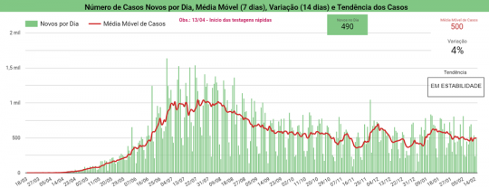 Em todo o Piauí foram confirmados nesta segunda-feira 15, mais 490 casos com 11 óbitos. A situação da pandemia no estado permanece em estabilidade, com média móvel de novos casos em 500 e média móvel em 9 com relação aos óbitos.