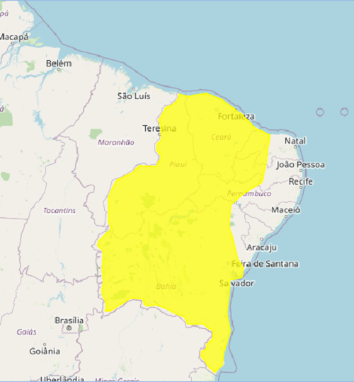 O alerta do instituto para esta quarta-feira 17, também vale para quase toda a região nordeste.