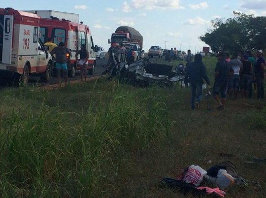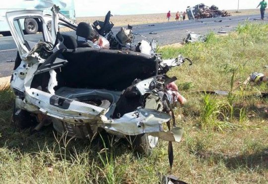 Uma colisão entre um veículo modelo Sandero e um caminhão, matou cinco pessoas da mesma família. O acidente aconteceu na BR-020, no inicio da tarde desta segunda-feira, no município de Luiz Eduardo Magalhães-BA,