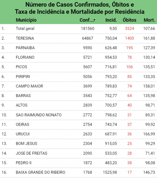 Atualmente Campo Maior é a 6ª entre as 10 cidades mais afestadas pela covid-19 no Piauí. O município possui 3.699 casos acumulados e 74 mortes provocadas pela doença.