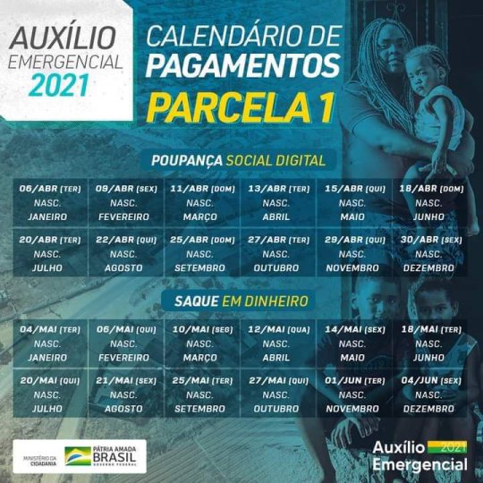 O calendário de pagamentos do auxílio emergencial (veja aqui) já foi definido. Durante o mês de abril, serão realizados 12 depósitos nas contas dos trabalhadores. O benefício começará a ser pago na próxima terça-feira (06) para quem nasceu em janeiro. O primeiro saque em espécie a ser liberado será no dia 04 de maio, quando este mesmo grupo poderá ir até uma agência sacar o benefício.