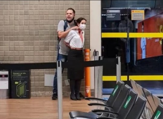 Pessoas que estavam na área de embarque gravaram imagens do momento em que o homem segurava a refém. Nas imagens, é possível ver que ele diz que tem uma bomba. Ele também ameaça: "Se vier, eu furo. A caneta está na [artéria] carótida dela, ninguém reage". Ele também exigiu a presença da Polícia Federal e pediu que os presentes filmassem e divulgassem as imagens.