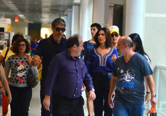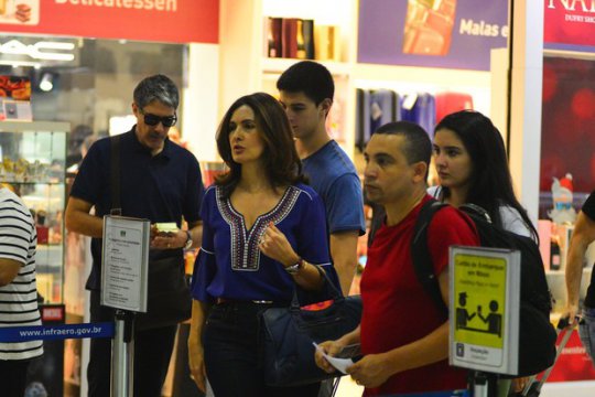 Fátima estava com um visual elegante e confortável para viajar, enquanto Bonner escolheu um mais despojado. Ela também estava com uma bolsa da grife Balenciaga, de US$ 2, 1 mil, o equivalente a R$ 8,3 mil, a tiracolo.