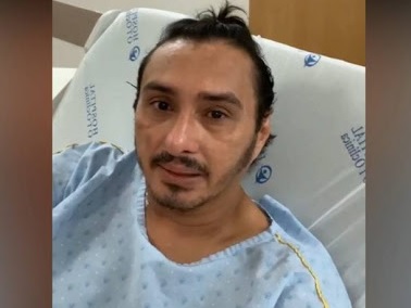 "Voltei! Beijo para vocês. Deus abençoe. Não esqueça nunca da fé, do amor ao próximo e que Deus existe", disse o artista, ainda com dificuldades na fala.