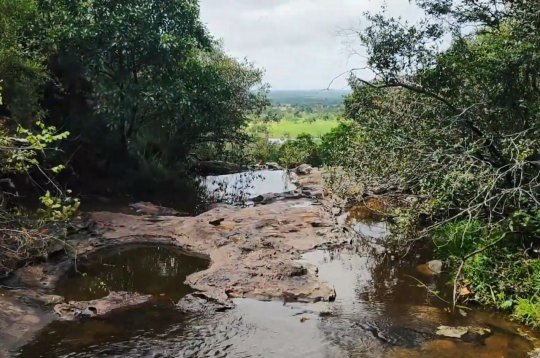 Nesse trajeto, o(a) viajante passará pela Churrascaria Carneiro na Brasa e por algumas residências. Em seguida, passará por uma ponte que levará à entrada. Depois da ponte, o(a) viajante entrará na estrada de terra e passará por um pequeno riacho, só depois continuará o trajeto e encontrará uma entrada à direita. Há uma trilha que levará até a parte superior da cachoeira. Depois, é só seguir a trilha para descer a cachoeira. A referência será observar os paredões e seguir o caminho até a cachoeira.