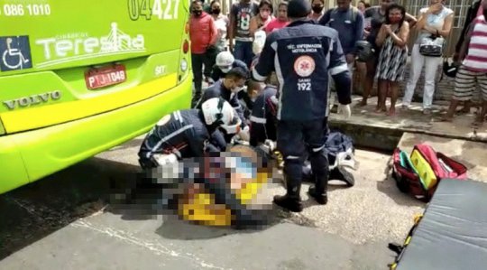 Uma mulher não identificada caiu ao desde de um ônibus do transporte público de Teresina, na manhã desta quinta-feira (6), e teve a perna esmagada pelo pneu do veículo, que atende a Vila Irmã Dulce, bairro Angelim, Zona Sul da capital.