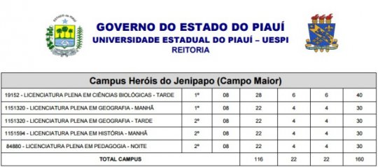 A Universidade Estadual do Piauí – UESPI torna público o edital referente ao ingresso à universidade por meio do Sistema de Seleção Unificado – SiSU 2016. Serão ofertadas 4.985 (quatro mil, novecentas e oitenta e cinco) vagas para 139 (cento e trinta e nove) Cursos, na modalidade Regular Presencial nos Campi/Centro de Teresina (Poeta Torquato Neto, Clóvis Moura e CCS), Barras, Bom Jesus, Campo Maior, Corrente, Floriano, Oeiras, Parnaíba, Picos, Piripiri, São Raimundo Nonato, União (CCA/Poeta Torquato Neto) e Uruçuí, para ingresso no 1o e/ou 2o semestres de 2016, conforme Termo de Adesão ao SiSU.