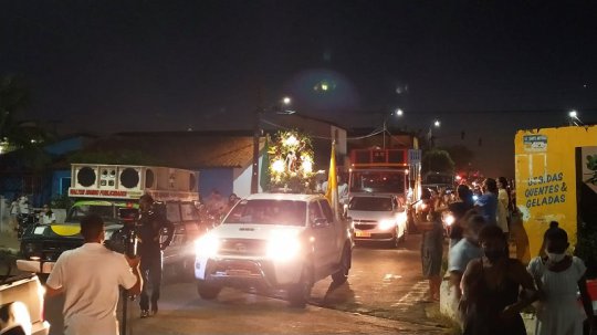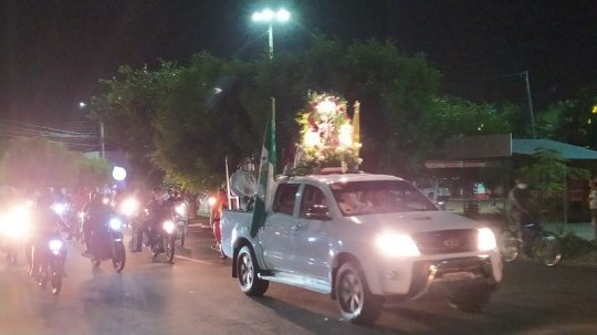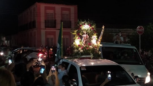 A imagem do original de santo Antônio saiu do colégio Patronato Nossa Senhora de Lourdes, e seguiu em carreata pela avenida que leva o nome do padroeiro, até a catedral no centro da cidade.
