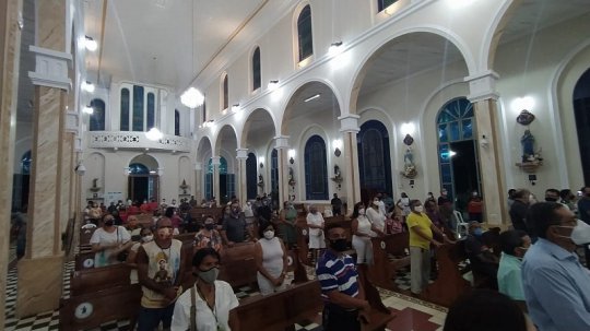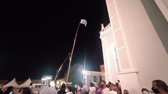 Em frente a catedral, foi realizado o levantamento do mastro, com o estandarte de Santo Antônio, e a tradicional queima de fogos. Mesmo com as recomendações de distanciamento, dezenas de pessoas acompanharam o momento.