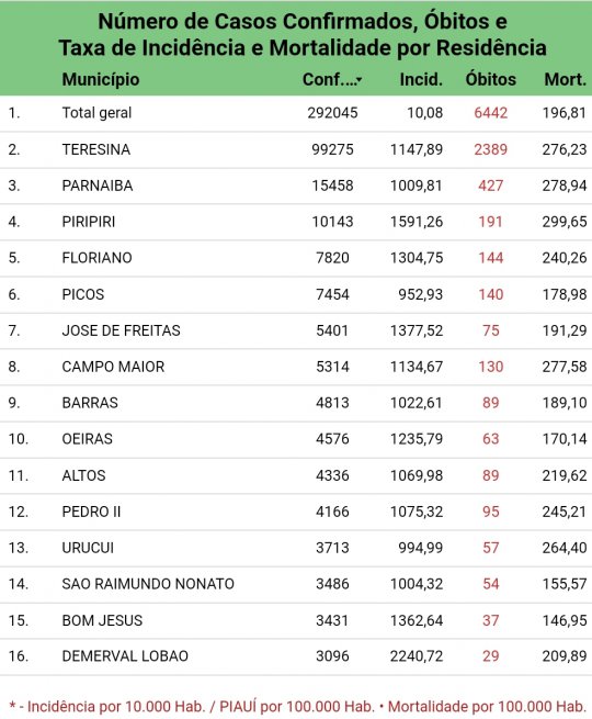 *No boletim da SESAPI ainda constam o registro de 130 óbitos em Campo Maior*