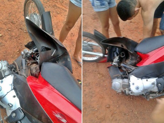 Não houve colisão com outro veículo, nem choque com poste ou qualquer objeto, a motocicleta se partiu ao meio, sozinha.