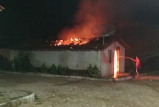 Imagens divulgadas nas redes sociais mostram a residência em chamas. É possível ver que as labaredas passam do telhado. Nas imagens um morador aparece tentaram apagar o fogo com uma mangueira.
