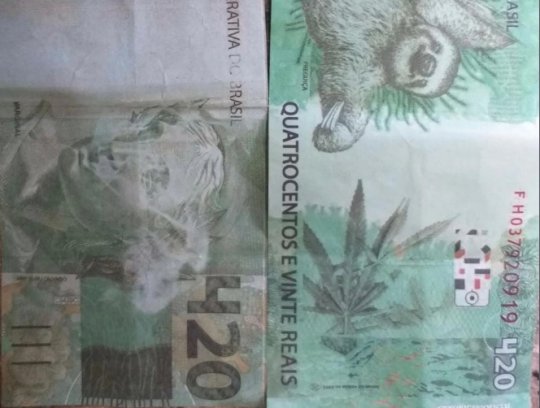 A Polícia Militar de Unaí, em Minas Gerais atendeu uma ocorrência um tanto quanto inusitada. Um idoso, de 75 anos, recebeu uma nota falsa de R$ 420 como pagamento de um empréstimo. Como a dívida era de R$ 100, ele também devolveu R$ 320 de troco. Segundo a Polícia Militar, o responsável por repassar a falsa cédula — que tem desenhos de bicho-preguiça e de folhas de maconha — foi preso.