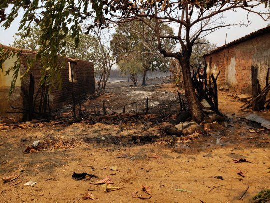 “O fogo atingiu o quintal de uma residência, queimou cajueiros e teve perda de madeiras compradas para o telhado. A população entrou em desespero e abandonou suas casas. O fogo só não atingiu a residência porque a brigada chegou no local. Fogo de origem desconhecida, provavelmente um princípio causado por uma ação criminosa ou algum descuido”, informou.