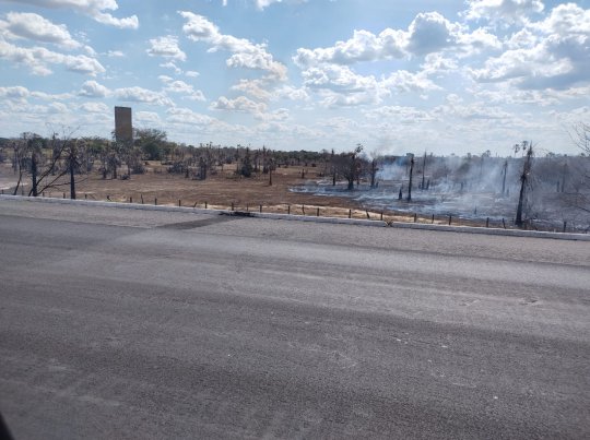 Segundo imagens feitas por motoristas que passaram pelo local, alertaram aos riscos dos focos de incêndio se alastrar no local, devido a baixa umidade e temperatura elevadas deste período