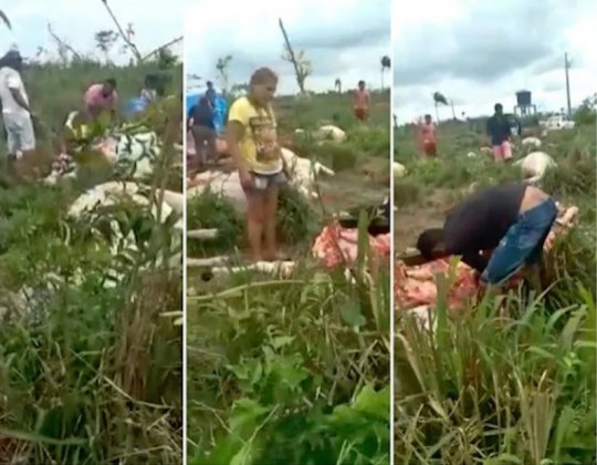 Em um vídeo, divulgado em grupos de WhatsApp, várias pessoas aparecem cortando a carne dos animais no local da tragédia.