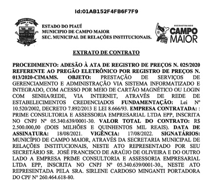 O prefeito de Campo Maior (PI), João Félix (MDB) contratou uma empresa de consultoria e assessoria por cerca de R$ 2,5 milhões de reais. A empresa em questão fica localizada na cidade de Santana de Parnaíba em São Paulo.