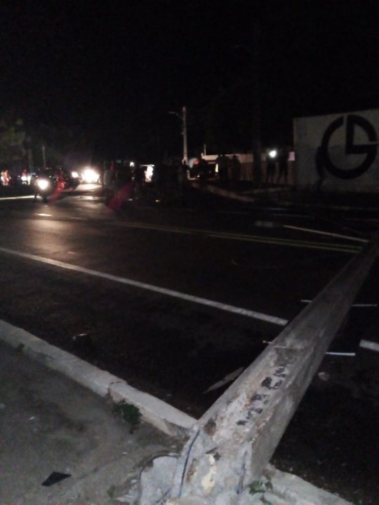 Com a força do impacto, o poste caiu derrubando vários fios de alta tensão, o que deixou a região sem energia por algumas horas.
