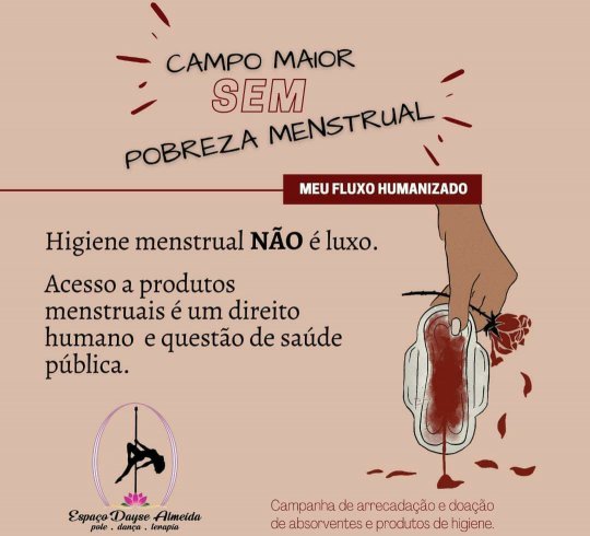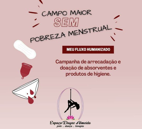 A empresa campomaiorense ‘Espaço Dayse Almeida’, iniciou nesta sexta-feira (08) uma campanha intitulada de: ‘Meu Fluxo Humanizado – Campo Maior sem pobreza menstrual’, para arrecadar absorventes que serão doados para meninas e mulheres em situação de vulnerabilidade socioeconômica em Campo Maior (PI).