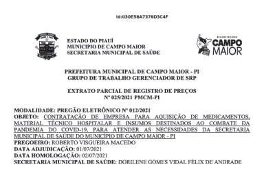 Mesmo sem comprovação de eficácia, o Prefeito de Campo Maior (PI), João Félix, licitou mais R$ 35.850 (trinta e cinco mil, oitocentos e cinquenta reais) para a compra de 10.000 (dez mil) comprimidos de Ivermectina e 7.500 (sete mil quinhentos) comprimidos de Hidroxicloroquina, conforme apuração do UOL. A licitação na modalidade pregão foi publicada no diário dos municípios no dia 09 de julho.