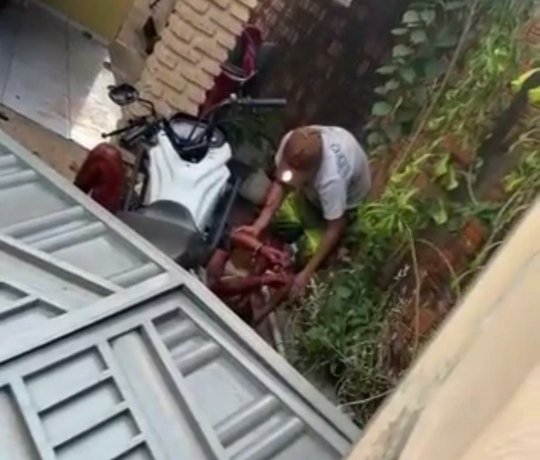 Washington danificou ainda um veículo que estava estacionado na rua. Durante a confusão foram acionados os parentes e o Alcidomar, que ia passando de moto no momento, para ajudar a acalmar o Washington.
