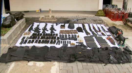 Durante as duas abordagens, foram recuperados, explosivos , armas longas ponto 50 e 10 fuzis, além de outras armas, munições, granadas, coletes, miguelitos e 10 veículos roubados.