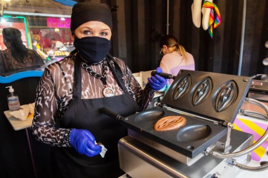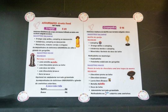 A exemplo de Lisboa, em Portugal, os crepes em formato de pênis e vulva são oferecidos em São Paulo em um contêiner da rua Augusta, no Centro, e fazem a alegria das diferentes tribos que frequentam a região.