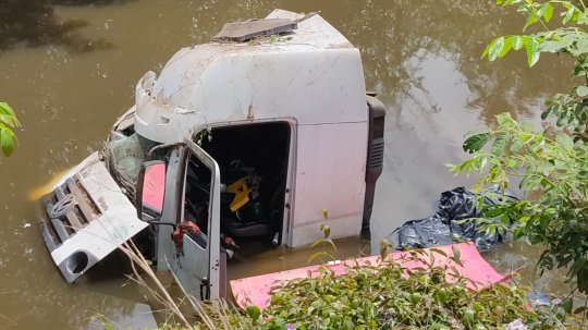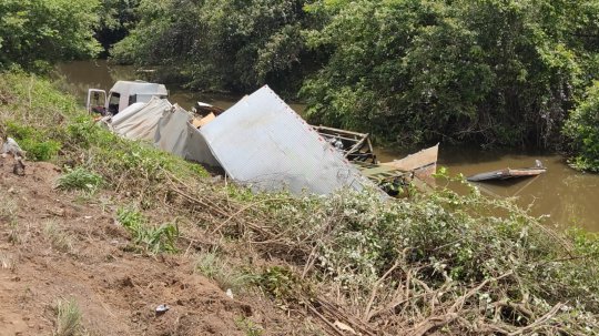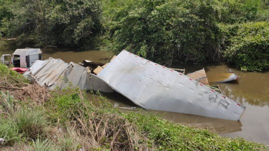 Segundo imagens feitas por populares que passaram no local, a carreta ficou parcialmente submersa no rio, totalmente destruída. O local está protegido pela polícia devido às motocicletas que estão presentes no veículo.