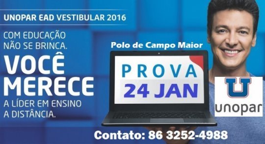 Em Campo Maior o polo funciona no Colégio Menino Jesus e ainda dá tempo você concorrer a uma vaga dos cursos ofertados. Faça sua inscrição pelo site http://www.unoparead.com.br/unopar/ ou diretamente no Colégio Menino Jesus.
