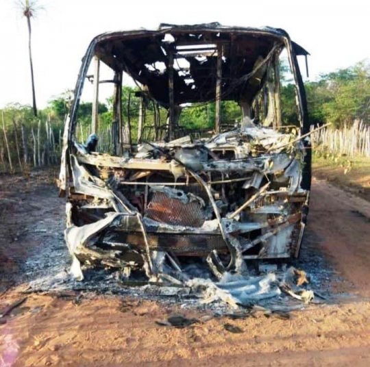 Um ônibus que faz o transporte de passageiros ficou totalmente destruído pelo fogo na noite da última sexta-feira (17), na localidade Currais, zona rural do município de Batalha, norte do Piauí.