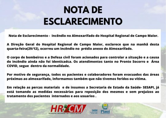 LEIA MAIS - URGENTE: Incêndio atinge Hospital Regional de Campo Maior (PI)