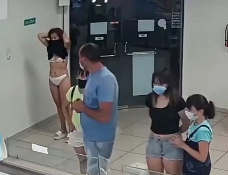 Um vídeo gravado no interior de uma sorveteria na Argetina viralizou nas redes sociais. Ele mostra o momento em que uma mulher "destemida" entra no estebelecimento apenas de sutiã e calcinha enquanto tenta amarrar seu vestido no rosto para usá-lo como máscara facial. As informações são da Crescer Online.