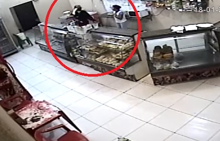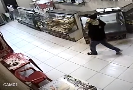 Toda ação foi registrada pela câmara de segurança do estabelecimento, onde mostra o suspeito com rosto coberto entrando no local rendendo a funcionária que estava sozinha, já prestes de fechar. Ele põe a arma na mulher, leva ela para atrás do balcão e exige todo o dinheiro do caixa.