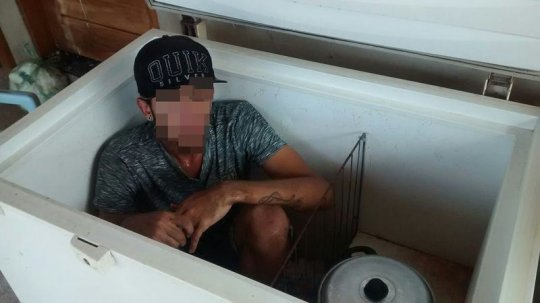 Neste sábado (23/01), aconteceu um caso inusitado na cidade de São João do Piauí, a 459 km de Teresina. Um jovem de 18 anos foi preso por uma guarnição formada pelo cabo Alder Cezar, soldado Primo e soldado Cleiton, acusado de roubar, no bairro Alto Sertanejo, uma moto modelo Bros 125. Durante as diligências, ele foi encontrado dentro de um freezer.