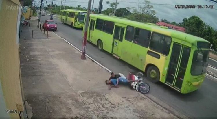 Um vídeo que circula nas redes sociais mostra o momento em que um ônibus derruba dois suspeitos de assalto de uma motocicleta em movimento no bairro Angelim, Zona Sul de Teresina. De acordo com a Polícia Militar, o fato aconteceu na manhã desta sexta-feira (28), quando a dupla tinha acabado de assaltar uma mulher na região.