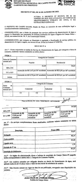 O prefeito João Félix assinou na última quarta-feira (26) um decreto autorizando o Serviço Autônomo de Água e Esgoto – SAAE a reajustar as taxas de água levando os moradores a pagar um aumento de 15,99% no consumo.