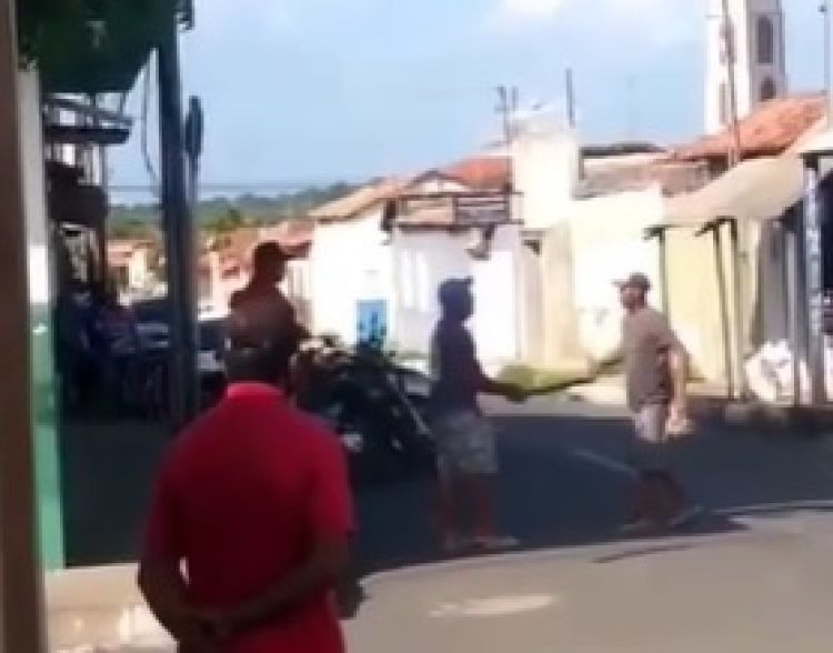 Nas imagens, um dos homens aparece com um pedaço de madeira. Ele chega a agredir o outro, mas logo a confusão é finalizada pelos populares que estavam nas proximidades.