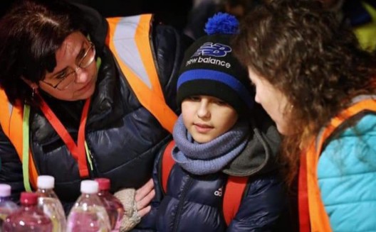 O garoto chegou à Eslováquia no sábado e foi acolhido por uma equipe de voluntários, que ofereceram alimentação.