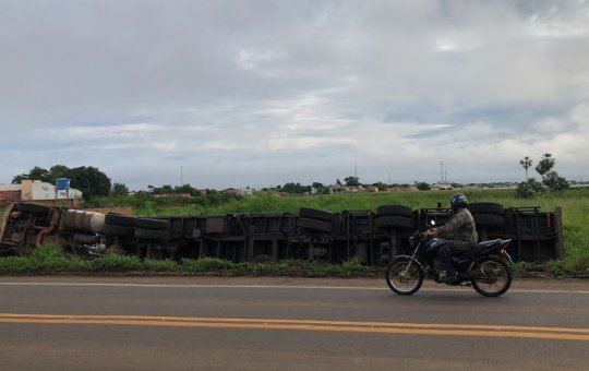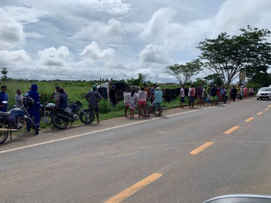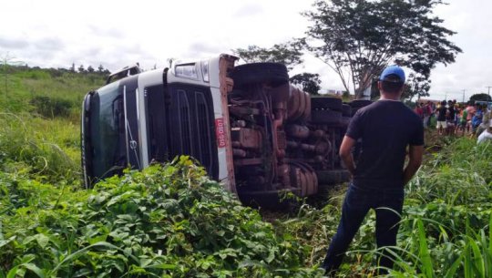 Curiosos se aglomeraram no local e o trânsito acabou ficando prejudicado. A PRF foi acionada. O acidente foi ao lado de uma grande distribuidora de bebidas, mas a carga não tinha nenhuma ligação com a mesma.
