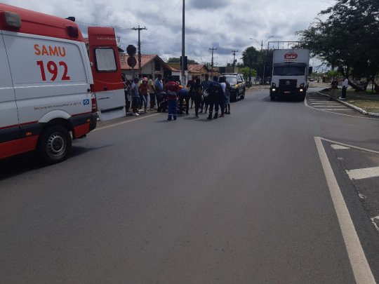 Uma mulher identificada por Maria de Deus Araújo de Oliveira, 41 anos, mais conhecida como Deusinha, sofreu um grave acidente de moto envolvendo um ônibus da empresa Guanabara, na manhã desta sexta-feira (31), por volta das 10h, próximo ao balão na entrada da cidade.
