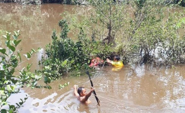 "A polícia militar foi acionada, nos dirigimos ao local e solicitamos apoio da Defesa Civil do município e de alguns pesadores e utilizando uma corda conseguimos remover o corpo para a margem do rio" disse o comandante do 15º Batalhão da Polícia Militar, major Etevaldo Alves. O corpo já estava em avançado estado de putrefação.