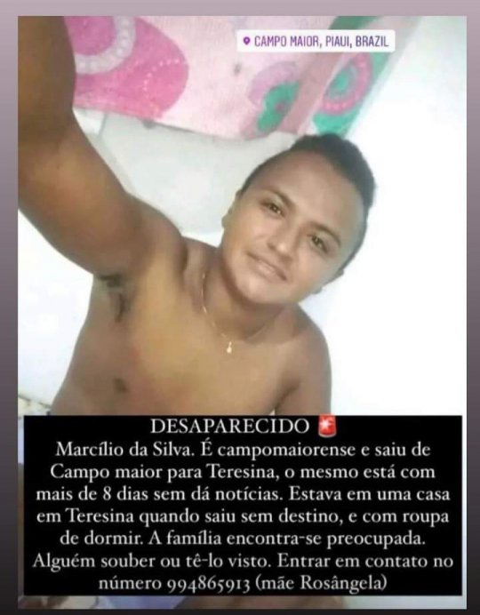 A família em Campo Maior está preocupada e pede a quem tiver alguma informação entrar em contato pelo número 9 9486-5913.