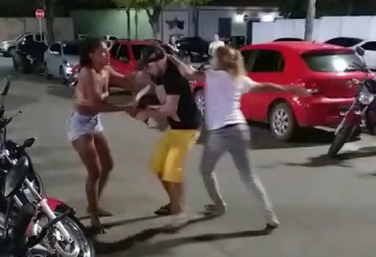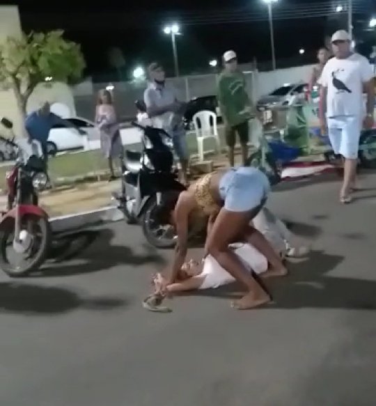 No último instante da gravação a mulher que integra o casal é atirada novamente ao chão com violência e quase é sufocada pelo pescoço quando a turma do "deixa disso" se aproxima para apartar as duas.