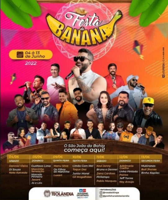A Justiça cancelou o "Festival da Banana", que seria realizado na cidade de Teolândia, após pedido do Ministério Público da Bahia (MP-BA). O município está em estado de emergência desde o final de 2021, por causa das fortes chuvas que atingiram o sul do estado.