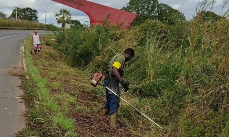 Os populares fizeram uso de roçadeiras, foices e inchadas e retiraram parte no mato que tomava conta do acostamento.