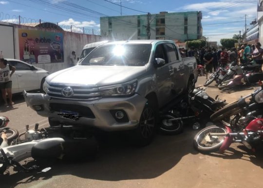 Após a batida, o motorista perdeu o controle da Hilux que colidiu contra um Celta de cor vermelha que estava estacionado, assim como nas motos que também estavam estacionadas. O condutor da Hilux acionou a seguradora e garantiu que nenhum dos proprietários serão prejudicados.