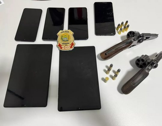 Durante as buscas na casa do suspeito, os policiais encontraram quatro celulares, dois tablets da Equatorial e duas armas de fogo municiadas sem qualquer registro. Segundo o delegado, os aparelhos eram vendidos tanto na loja de celulares, como nas redes sociais de forma avulsa.