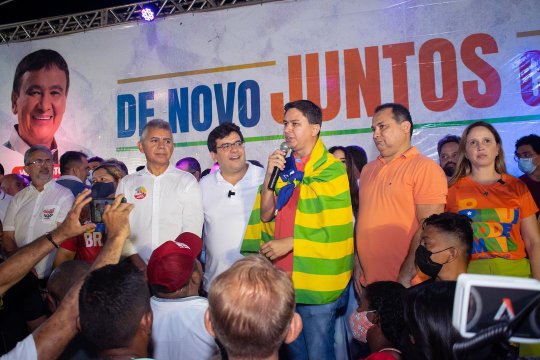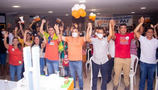 Após a cerimônia, Weslley, Evaldo Gomes e demais apoiadores participaram da plenária com Rafael Fonteles e Wellington Dias que aconteceu na sede da AABB.