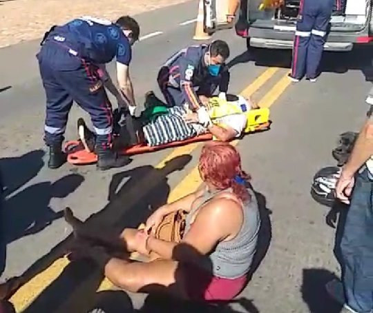 Nas imagens compartilhadas em aplicativos de mensagens, é possível ver o mototaxista caído ao chão, ainda deitado e uma mulher, possivelmente uma passageira, também no chão, porém já sentada.